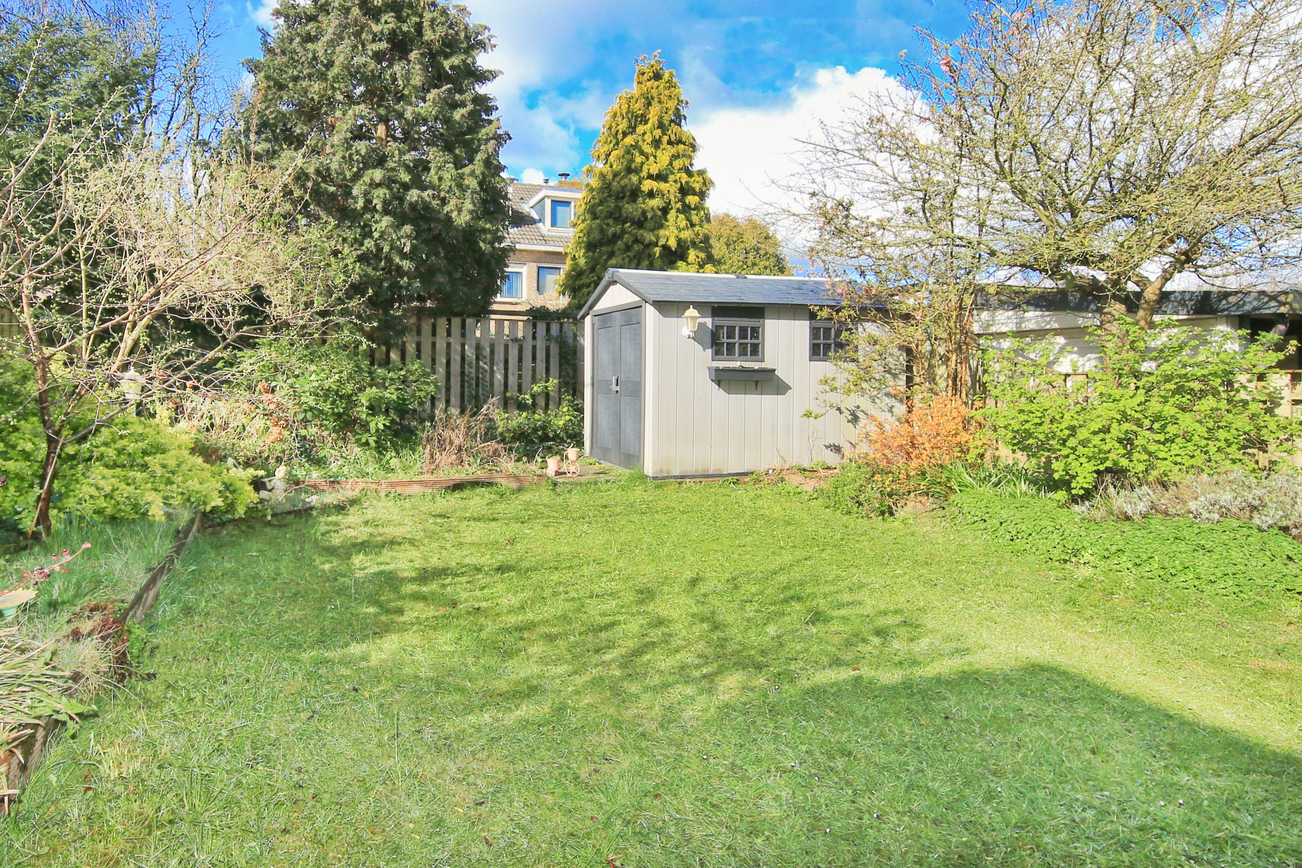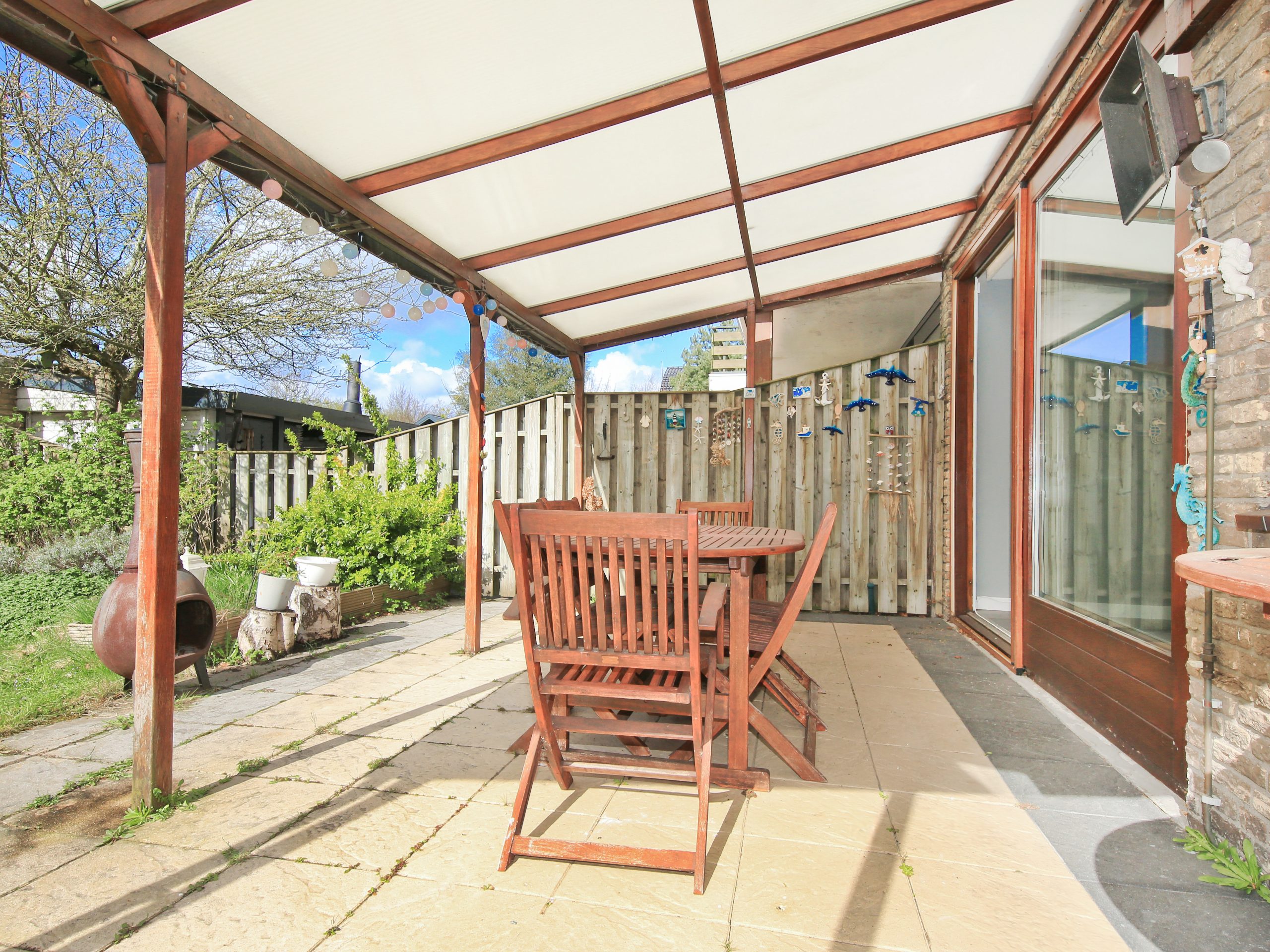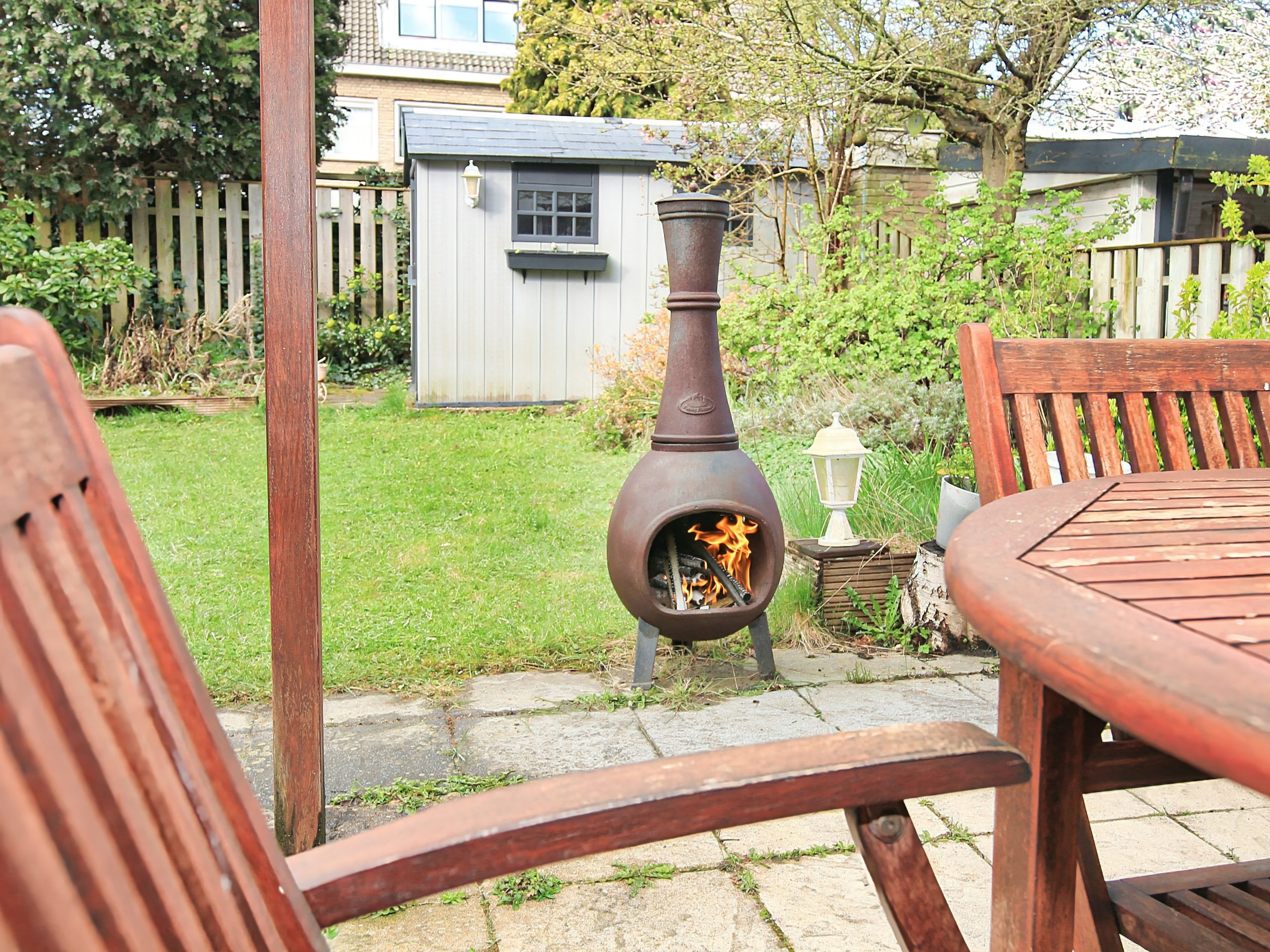 De voortuin is voorzien van vaste planten met een bestraat pad naar de voordeur. Via de schuifpui van de keuken is de groen aangelegde achtertuin, op het zuid westen gelegen, te bereiken. De tuin heeft een terras met overkapping, en is omringd door vaste planten met een grasveld in het midden van de tuin. Ook staat er een berging in de tuin.