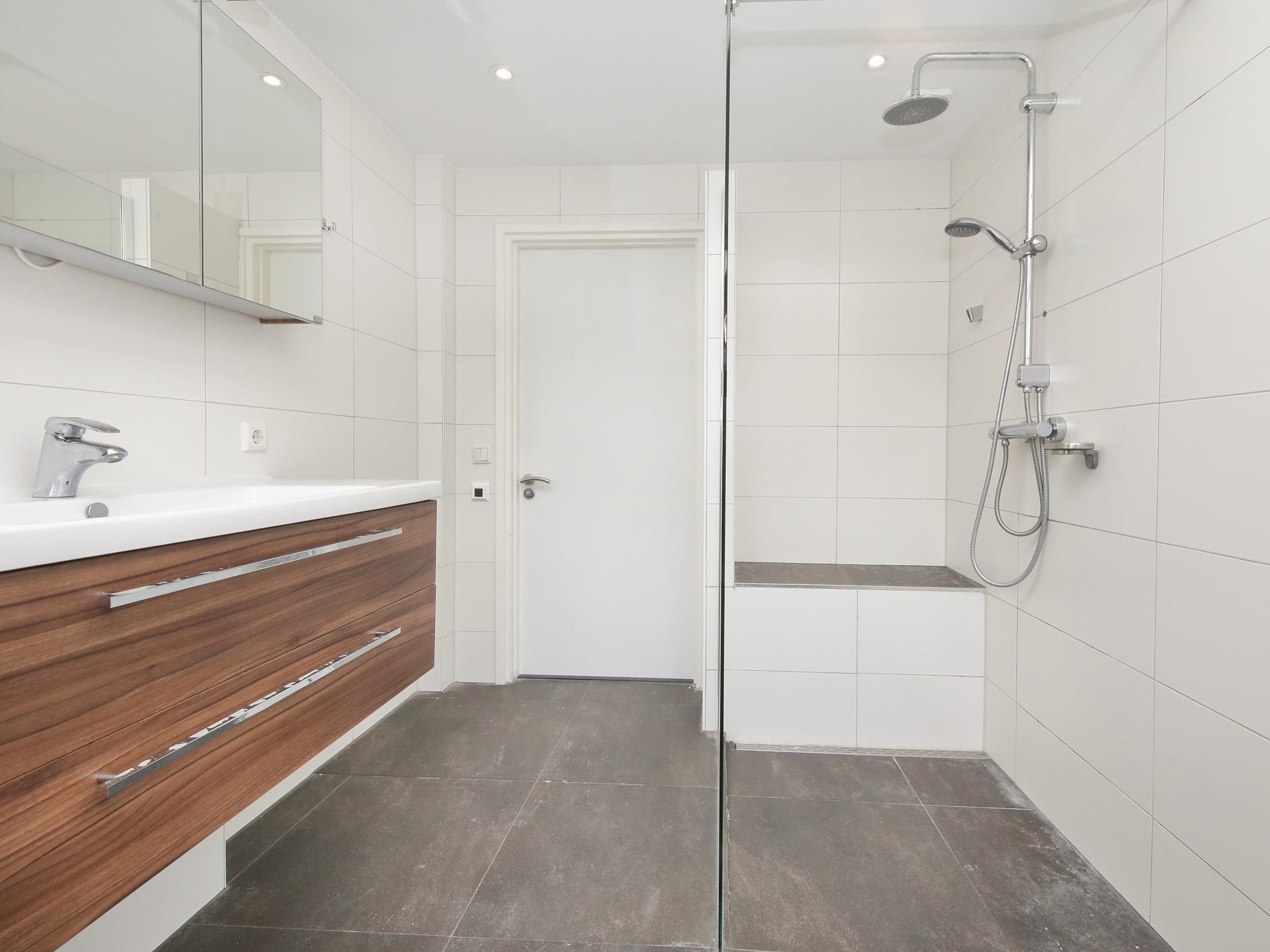 Overloop met vaste kast, zeer ruime slaapkamer aan de voorzijde (circa 20 m²), badkamer (circa 3 m²) voorzien van inloopdouche, wastafelmeubel, handdoekenradiator en toilet, slaapkamer achterzijde (circa 10 m²), badkamer (circa 7 m²) voorzien van inloopdouche, wastafel met meubel en radiator, ruim balkon (van 14 m²) te bereiken via overloop.