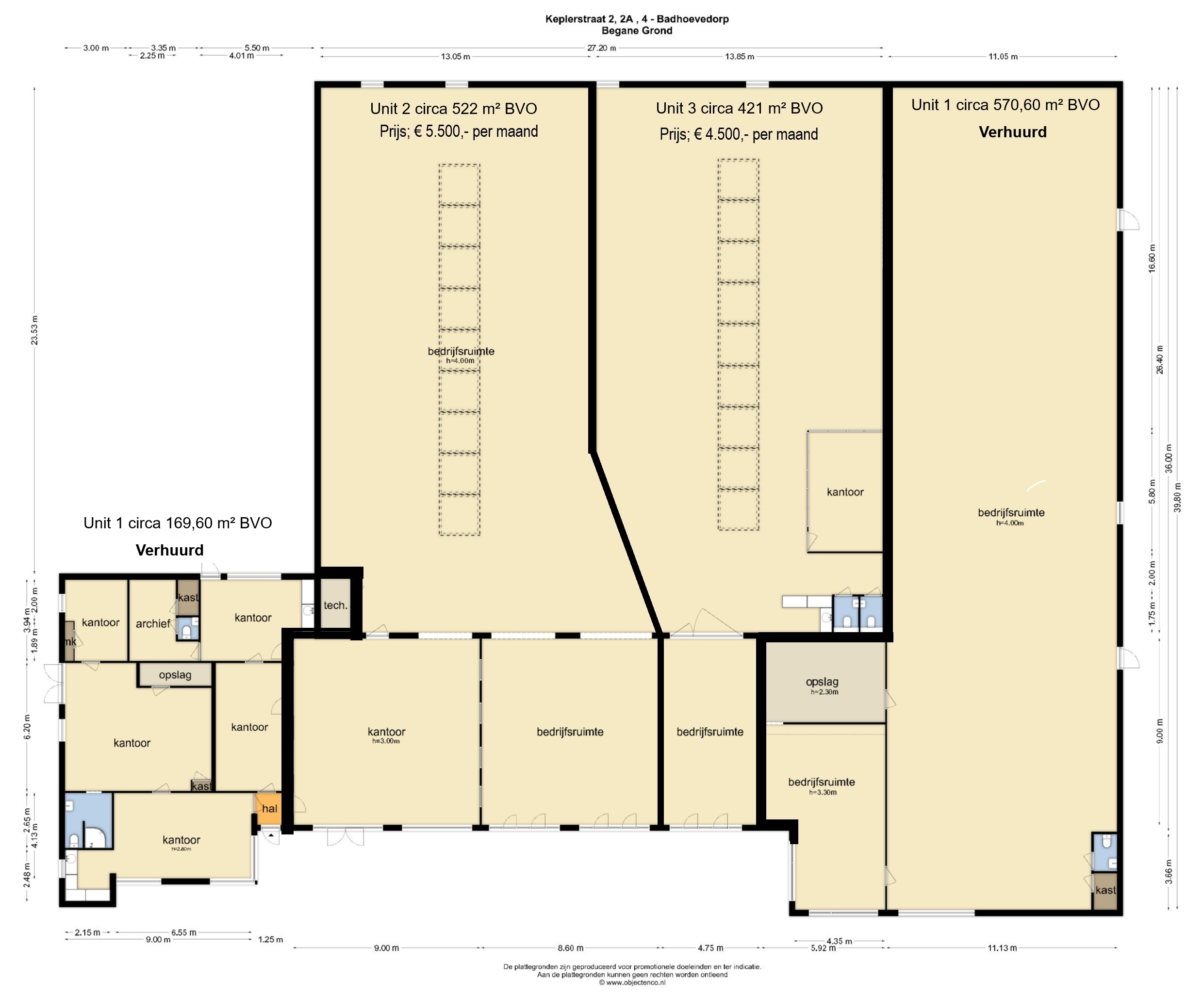 Units 2 en 3 zijn per unit of als geheel te huur.