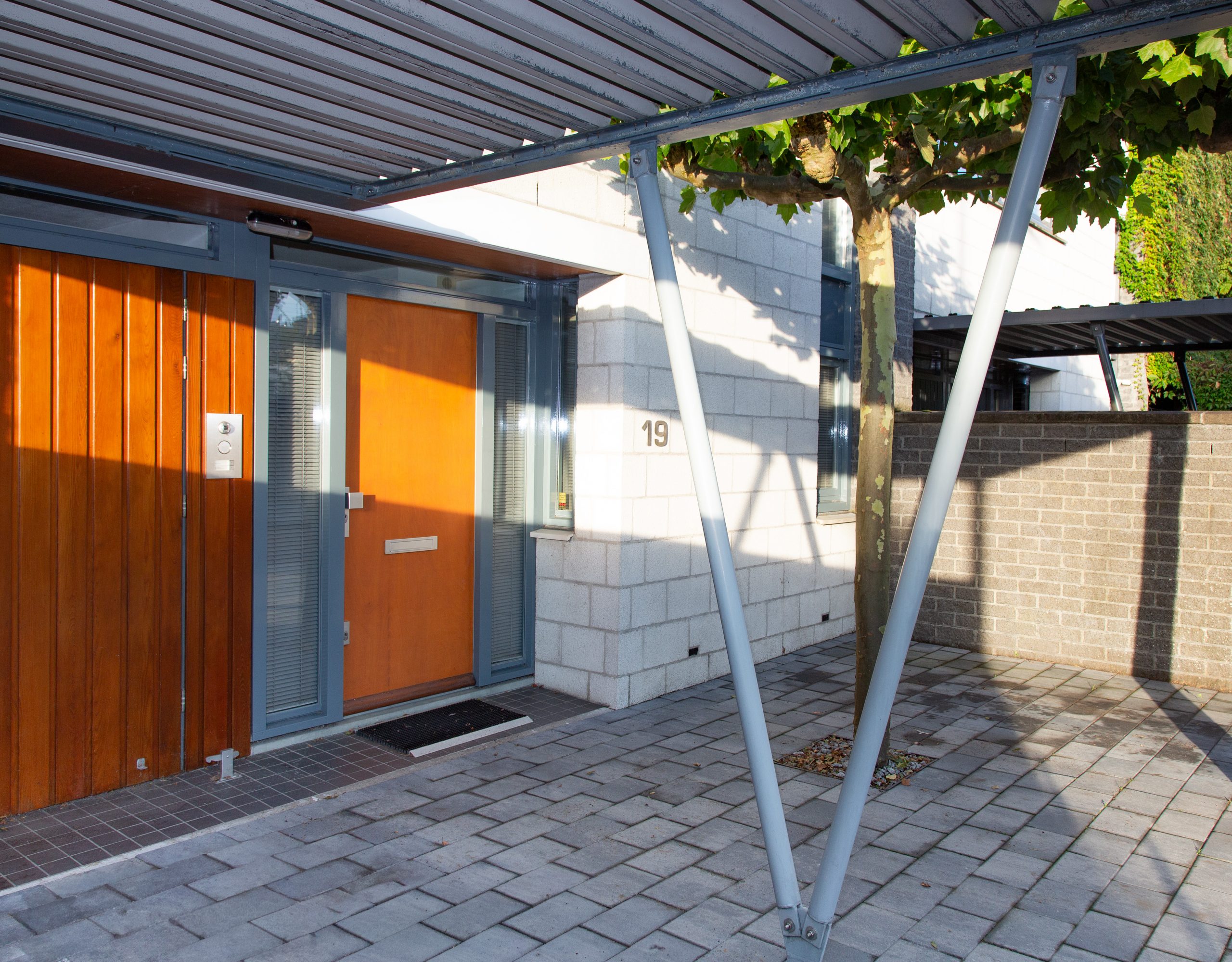 De entree bevindt zich op straathoogte met in de ruime voortuin, gelegenheid voor het parkeren van twee auto’s. Op deze woonlaag is ook de woonkeuken met uitzicht.