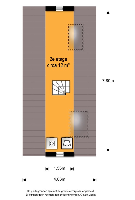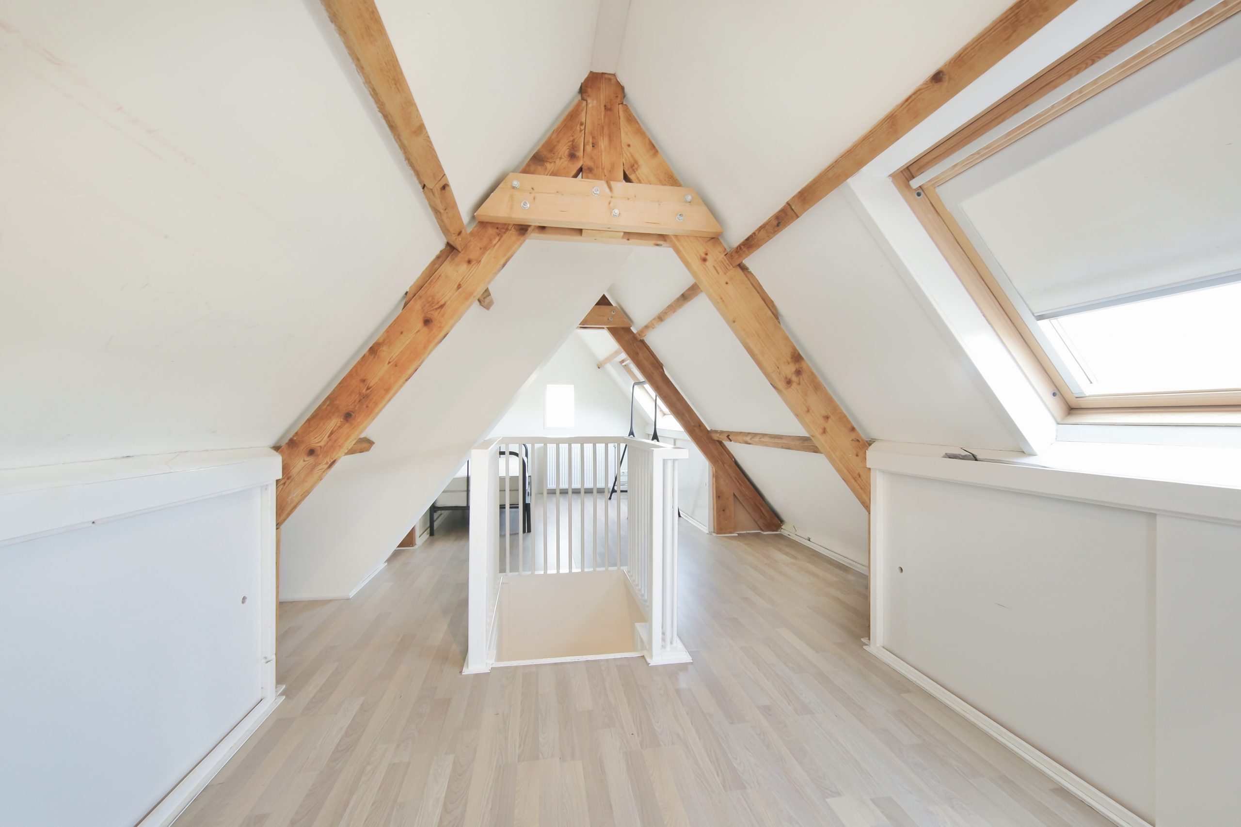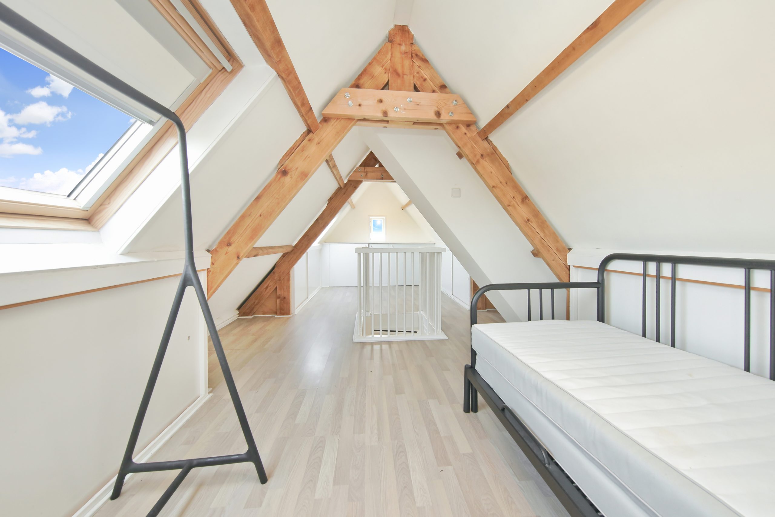 De tweede zolderetage van circa 12 m² met twee dakramen is zeer geschikt als gezellige extra kinderkamer.