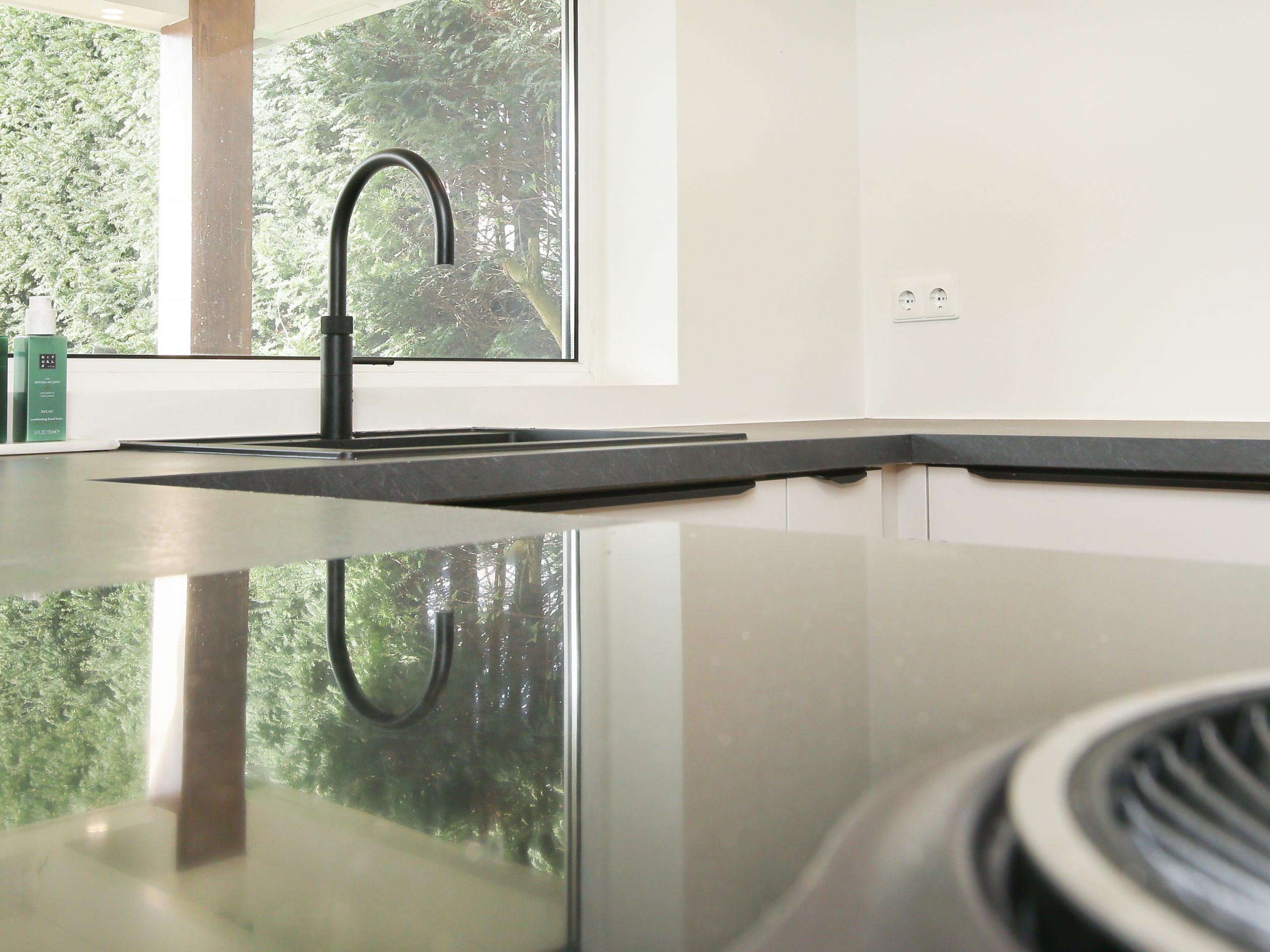 - een 4 pits keramische kookplaat met geïntegreerde afzuiging