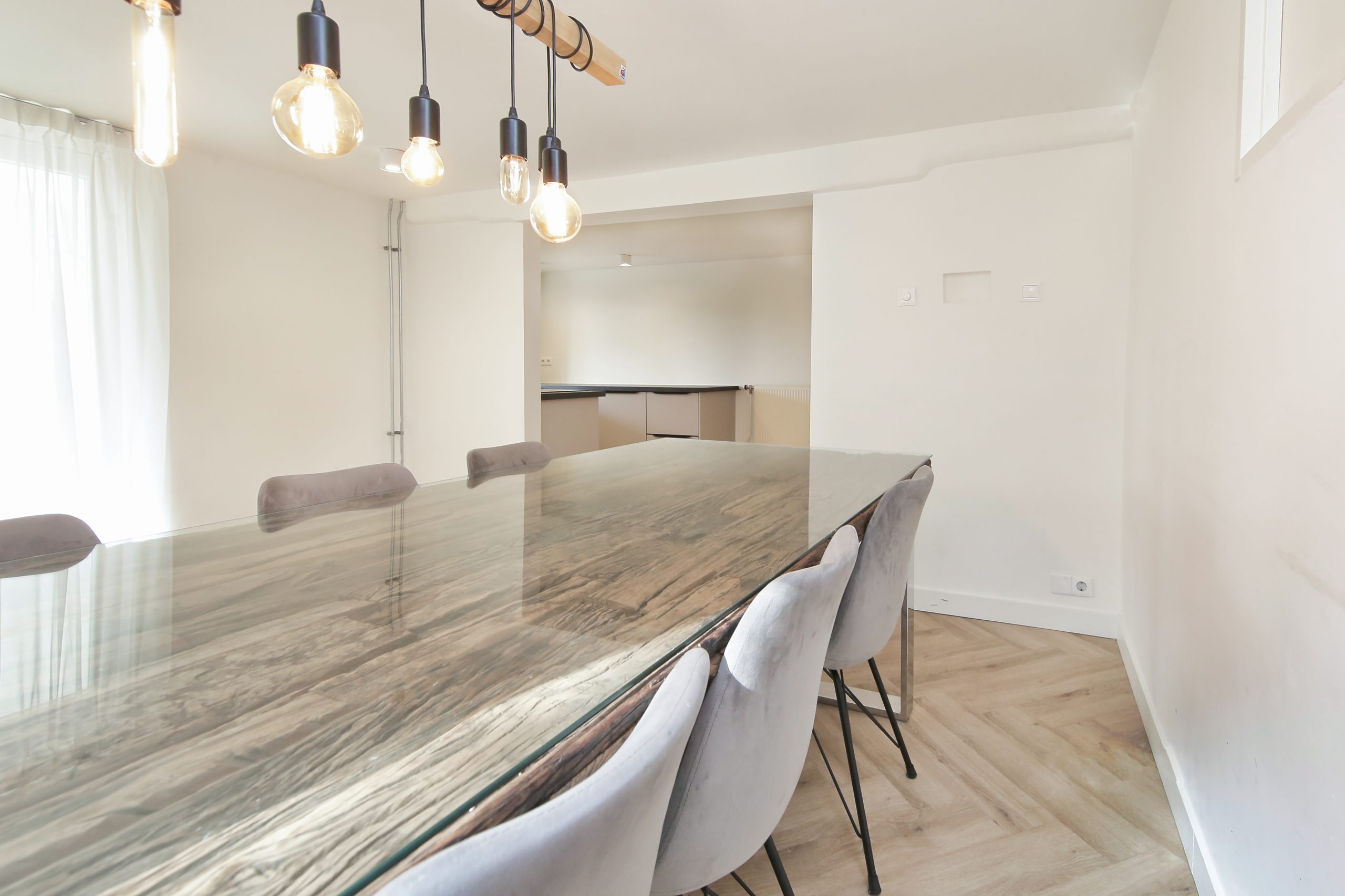 In het souterrain van ruim 26 m² is een hele gezellige en uitgebreide keuken (periode 2024) met inbouwapparatuur en een eetkamer met openslaande deuren naar het terras en tuin gerealiseerd.