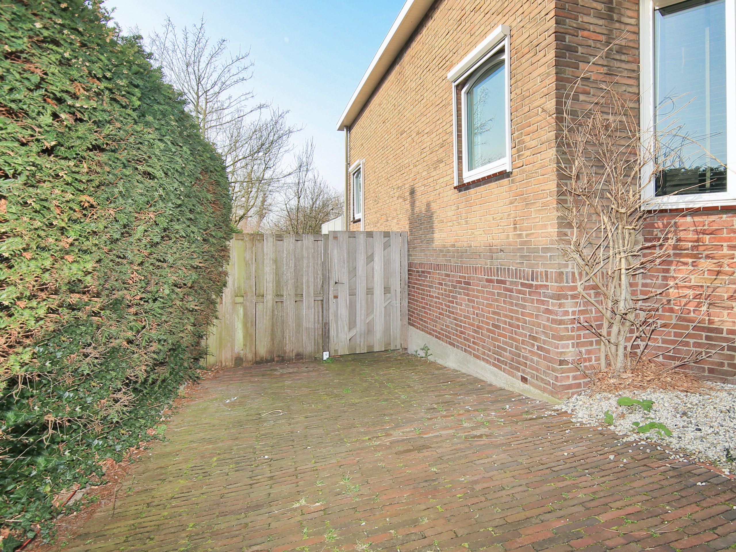 De zijtuin heeft een oprit voor parkeren op eigen terrein.