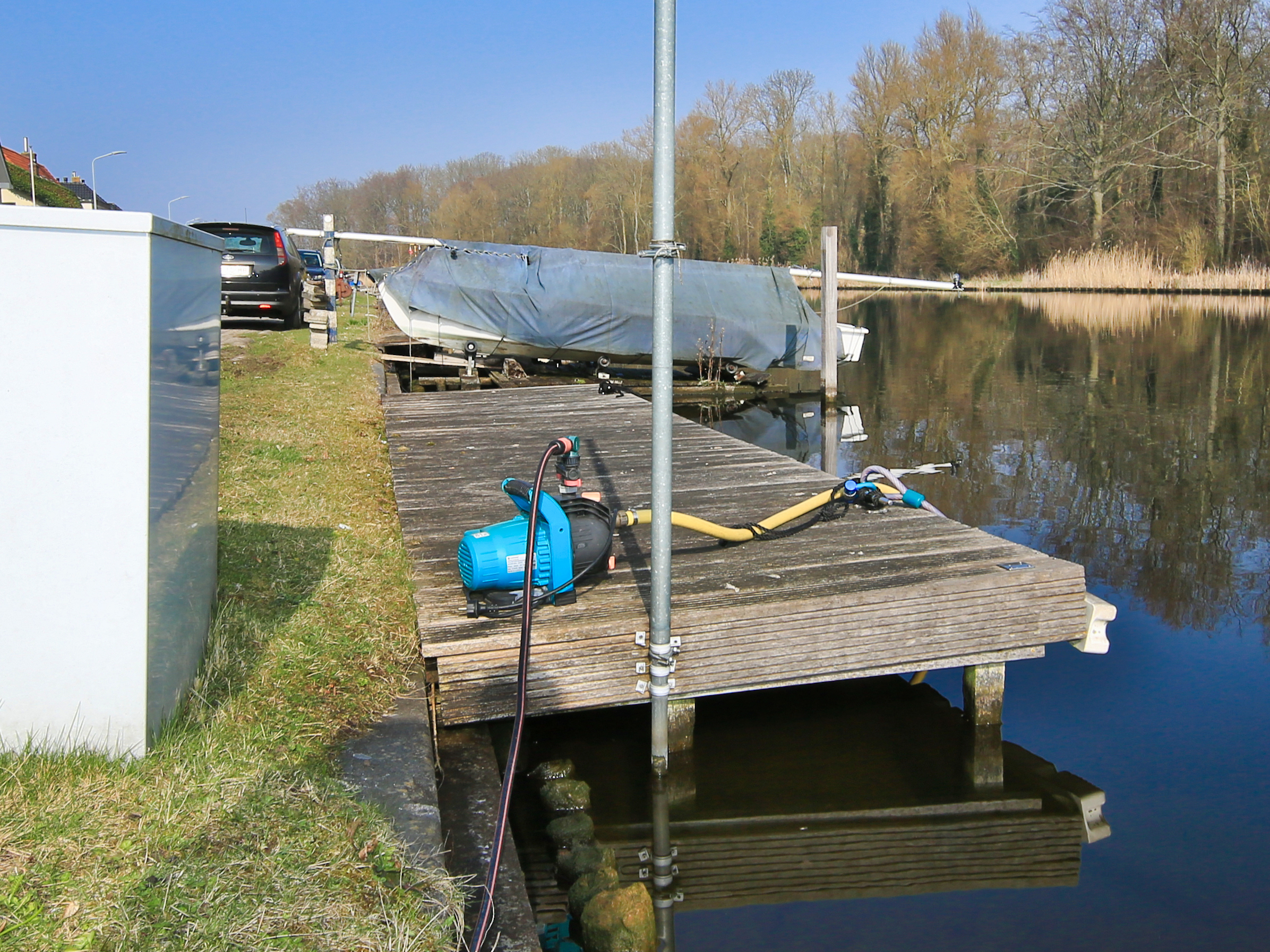 Aan de Ringvaart, ligt een bij de woning horend perceel berm-water van circa 5 meter diep en circa 11 meter breed met een houten aanlegsteiger. Bij de steiger is een elektriciteitskast geplaatst met meerdere stroomaansluitingen inclusief krachtstroom (o.a. voor een elektrische boot).