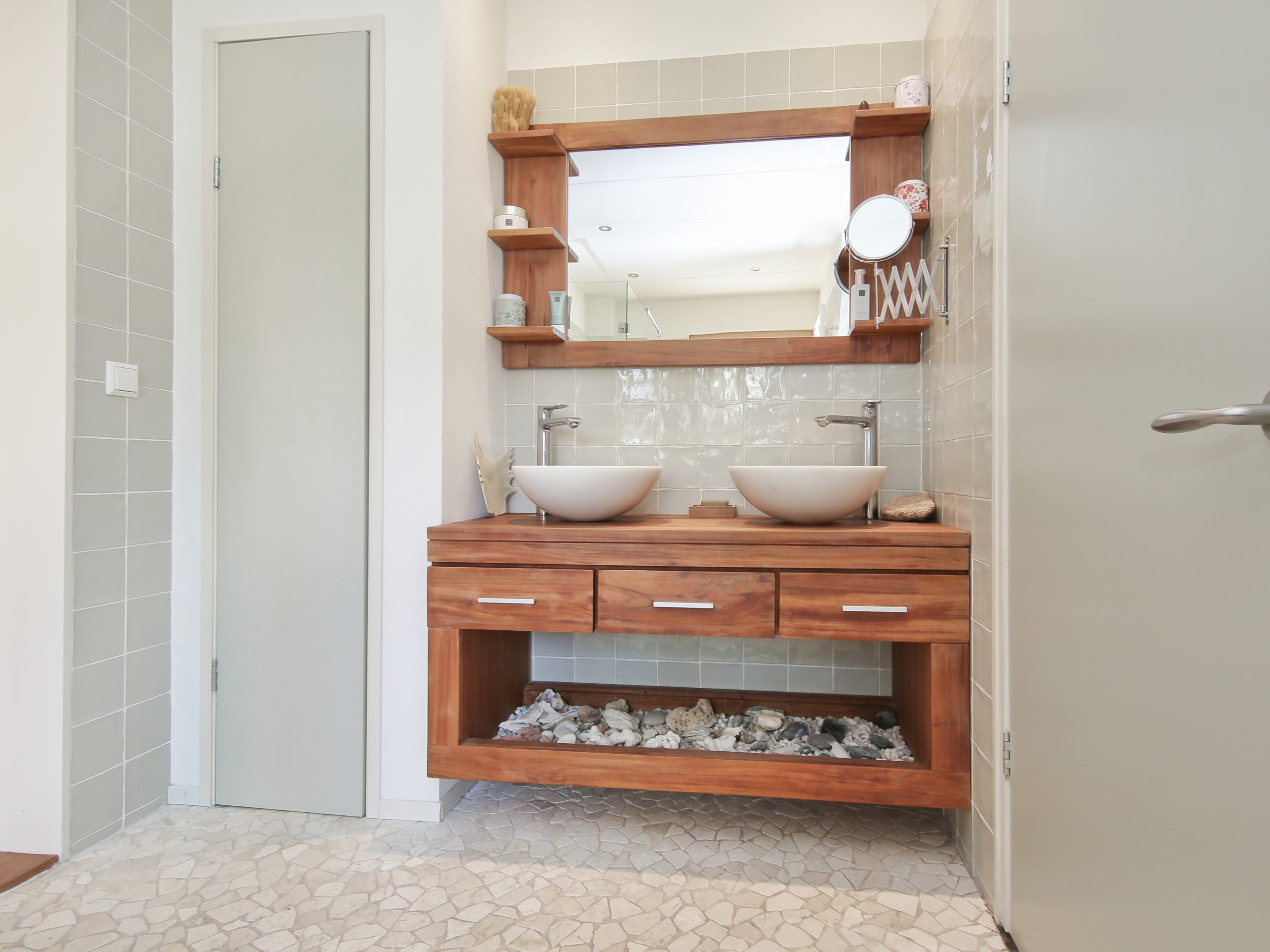 - een dubbele wastafel met meubel