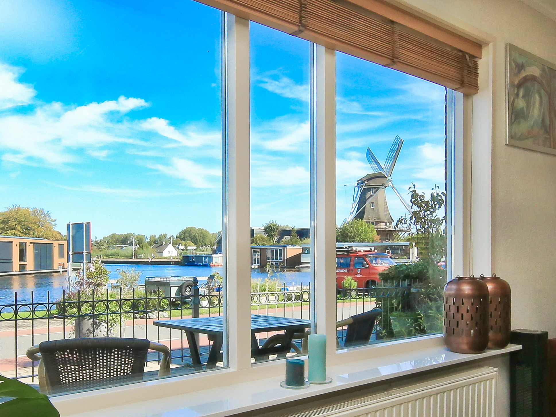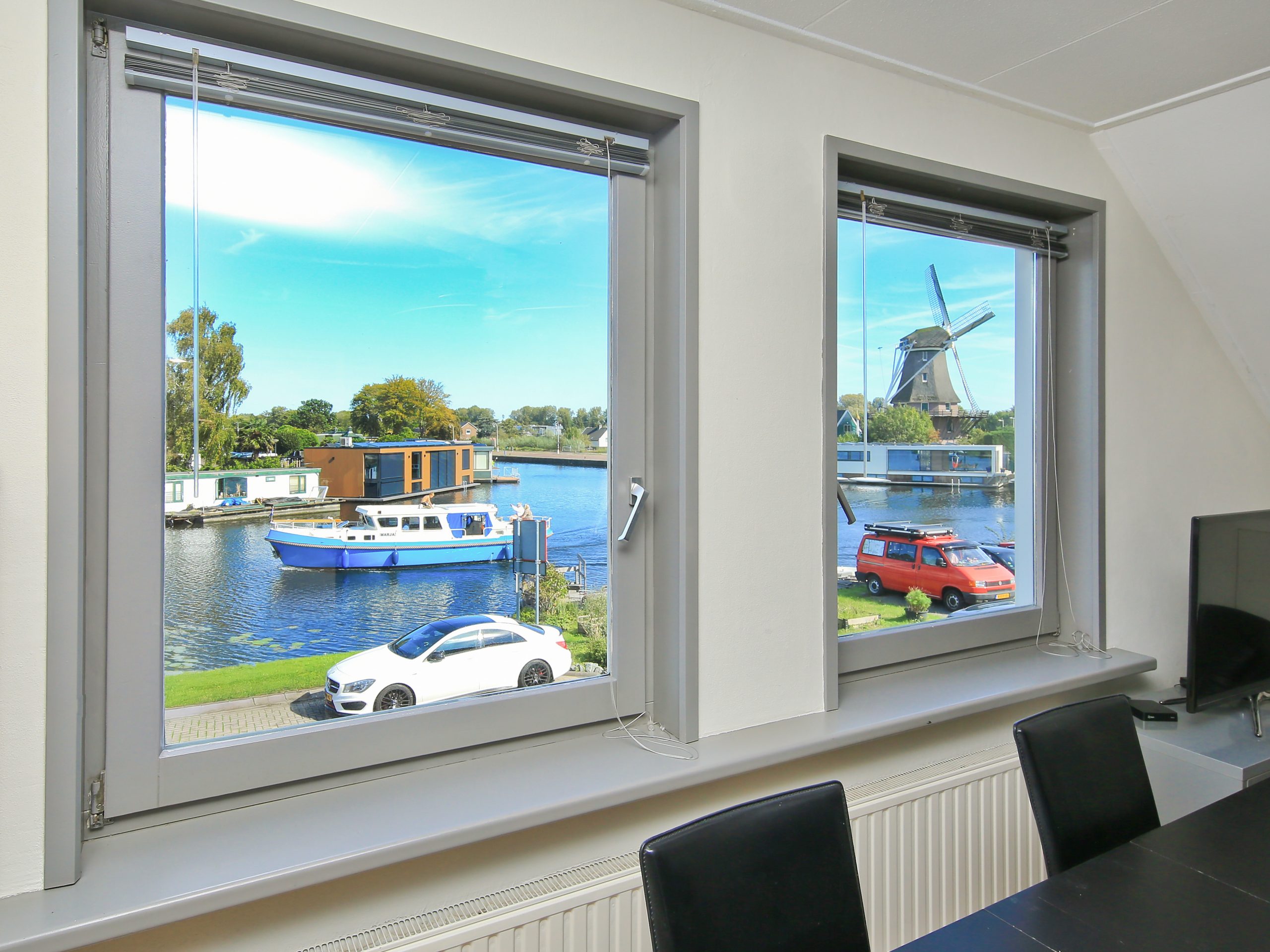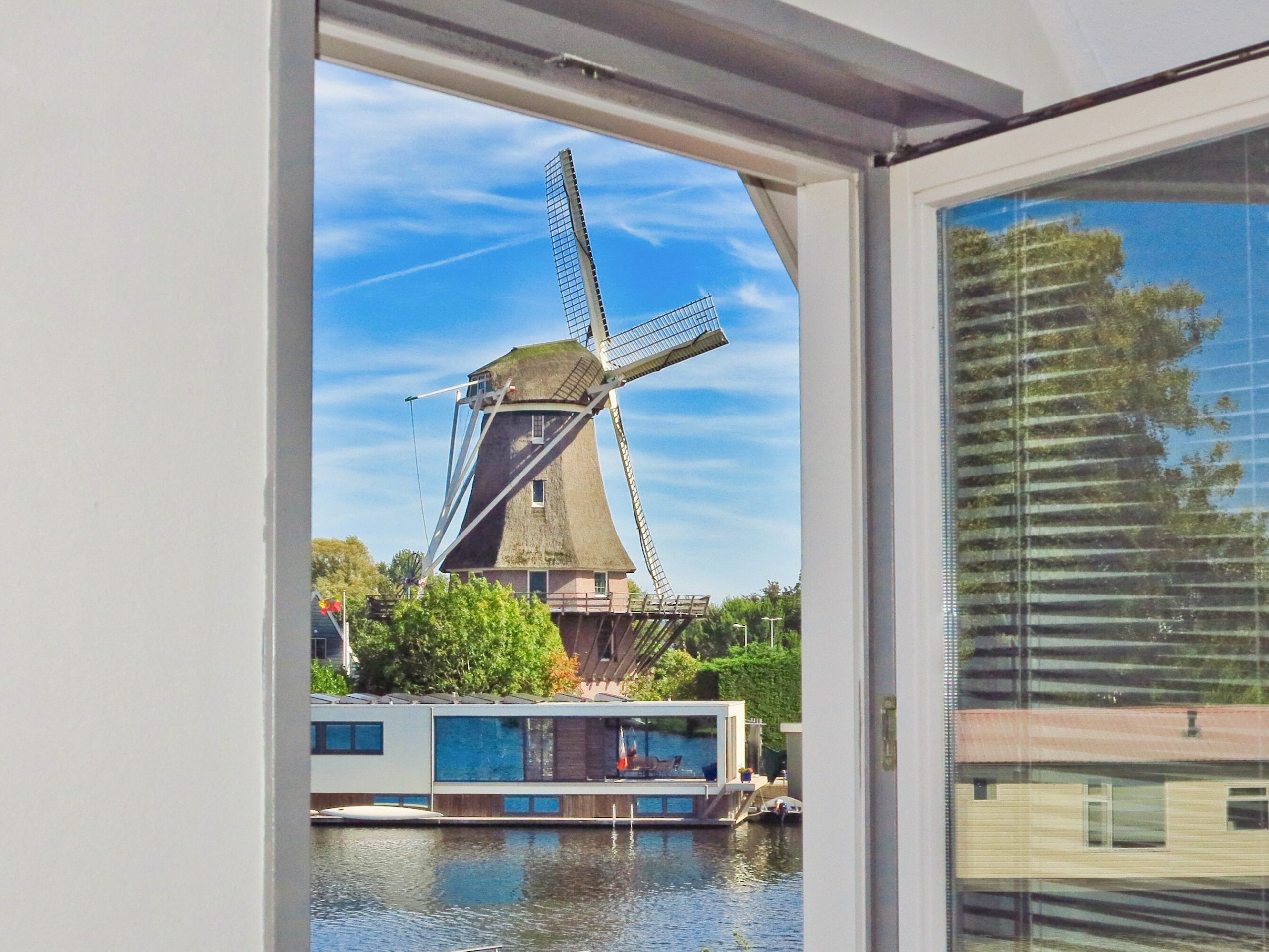 Vrijstaande dijkvilla met uitzicht over het water op het Akersluisje, de brug naar Amsterdam en de “Molen van Sloten”