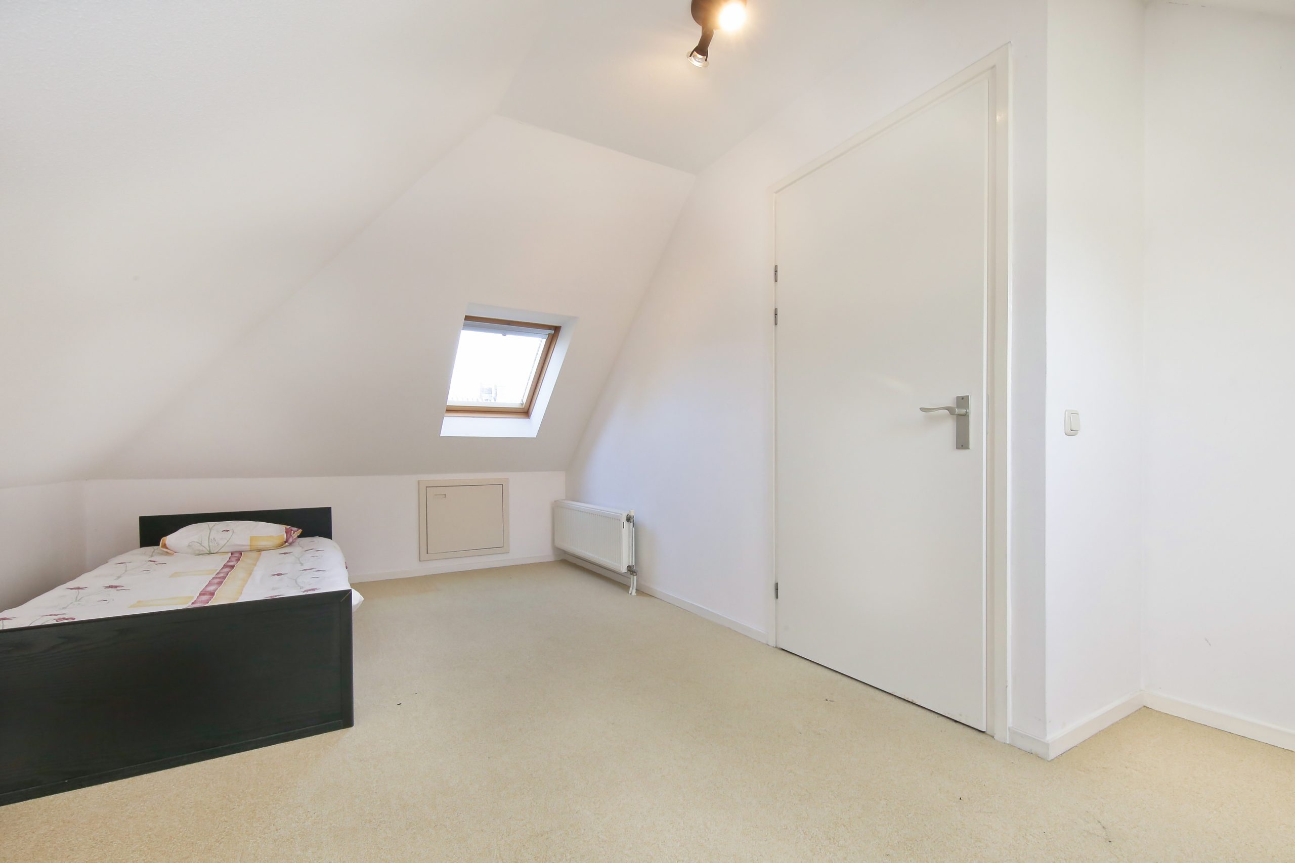 De overloop met vide geeft toegang tot twee slaapkamers van circa 10 m² en 14 m², beide met grote dakramen. Verder is er een tweede badkamer met douche, wastafel en toilet, een berging en een grote vliering. Deze verdieping biedt mogelijkheden voor extra kamers of werkruimte.