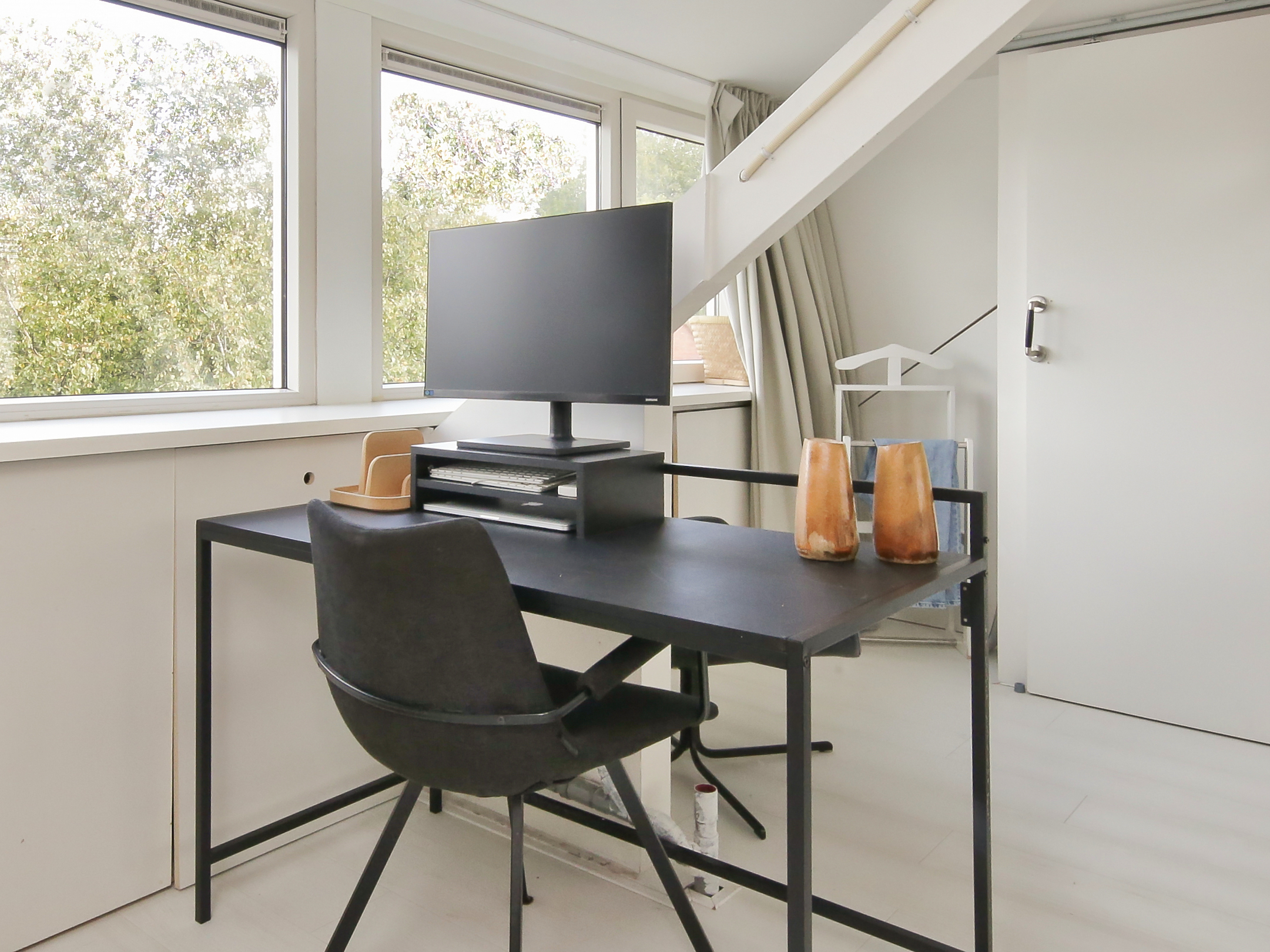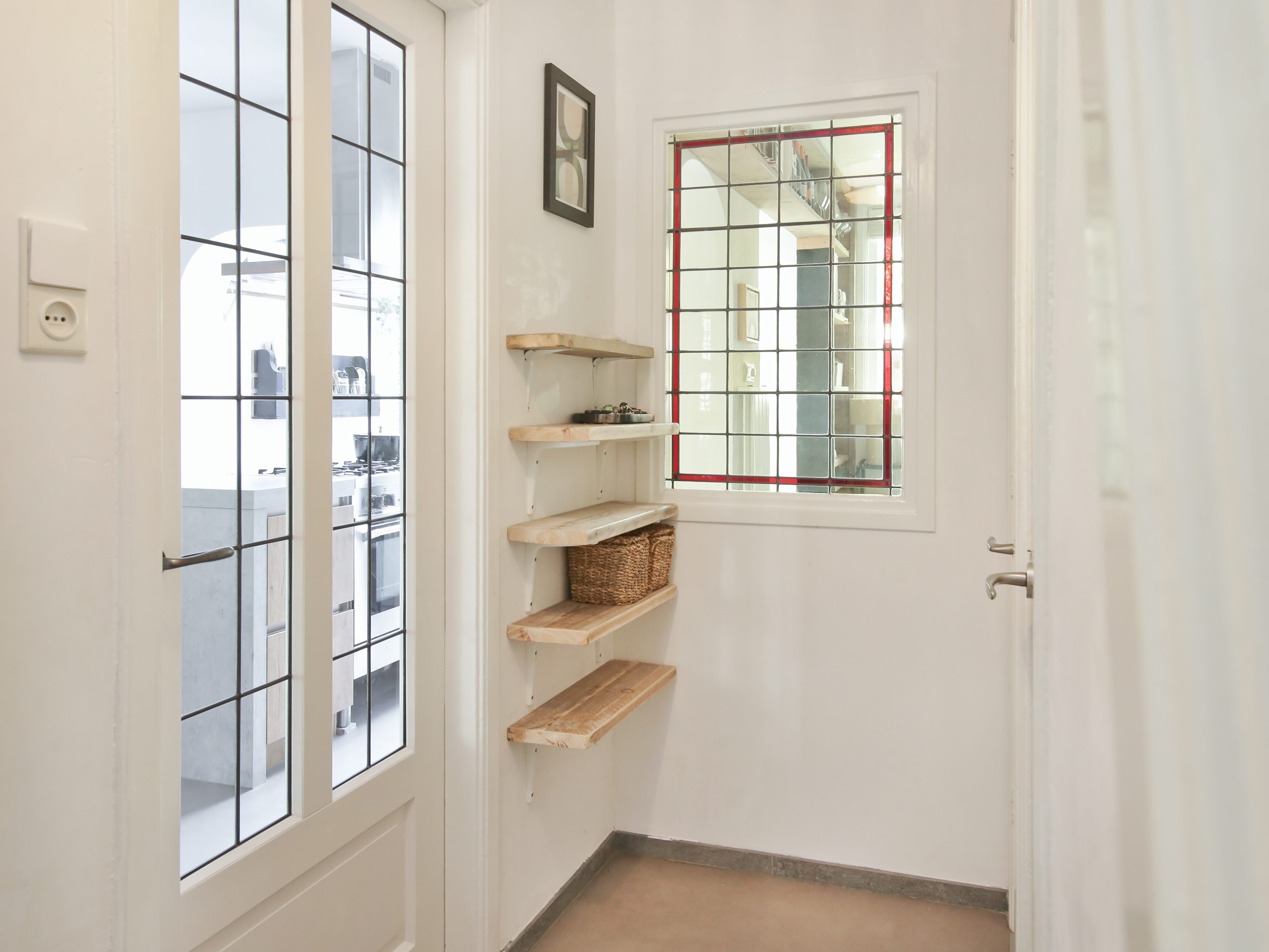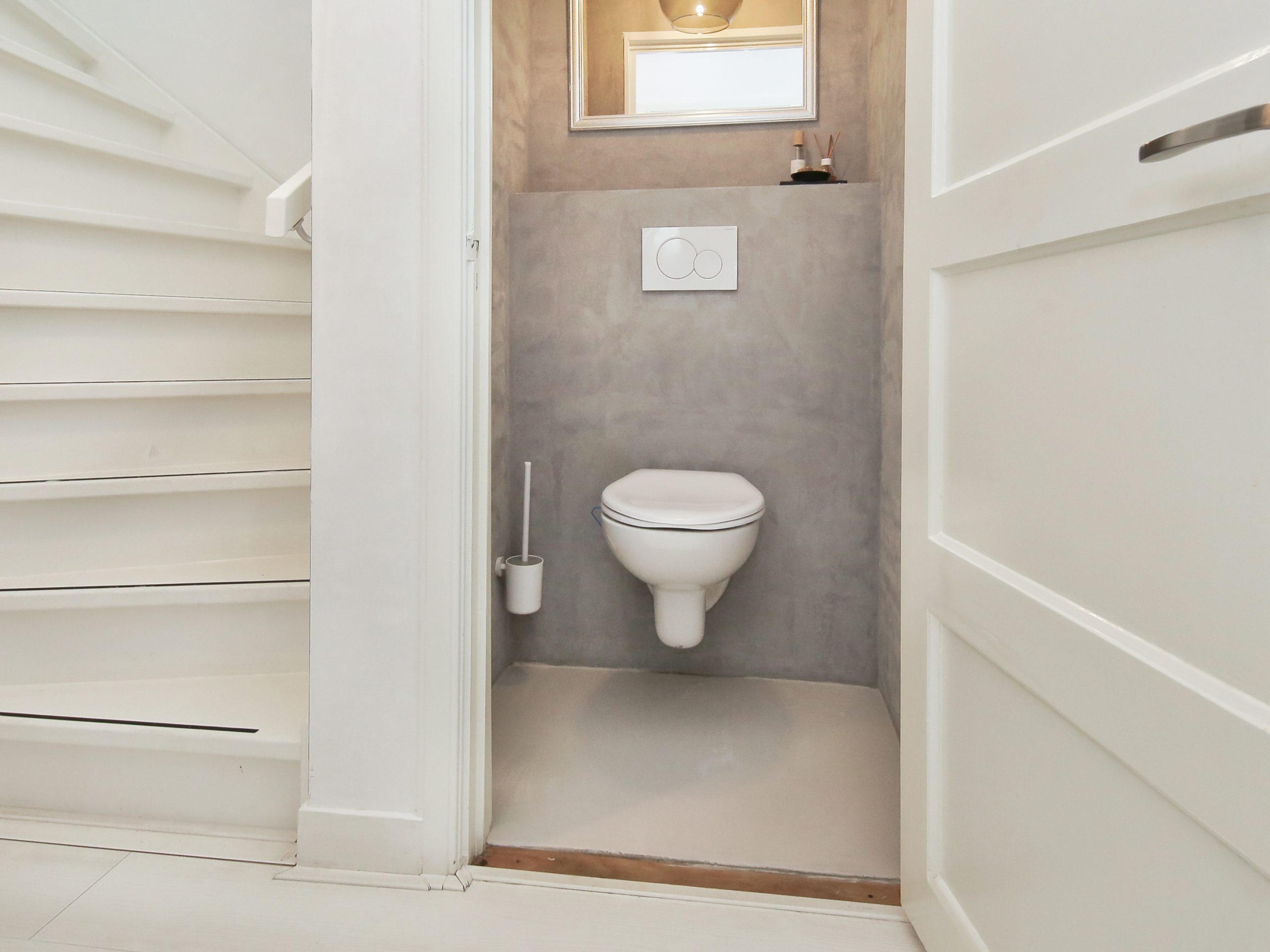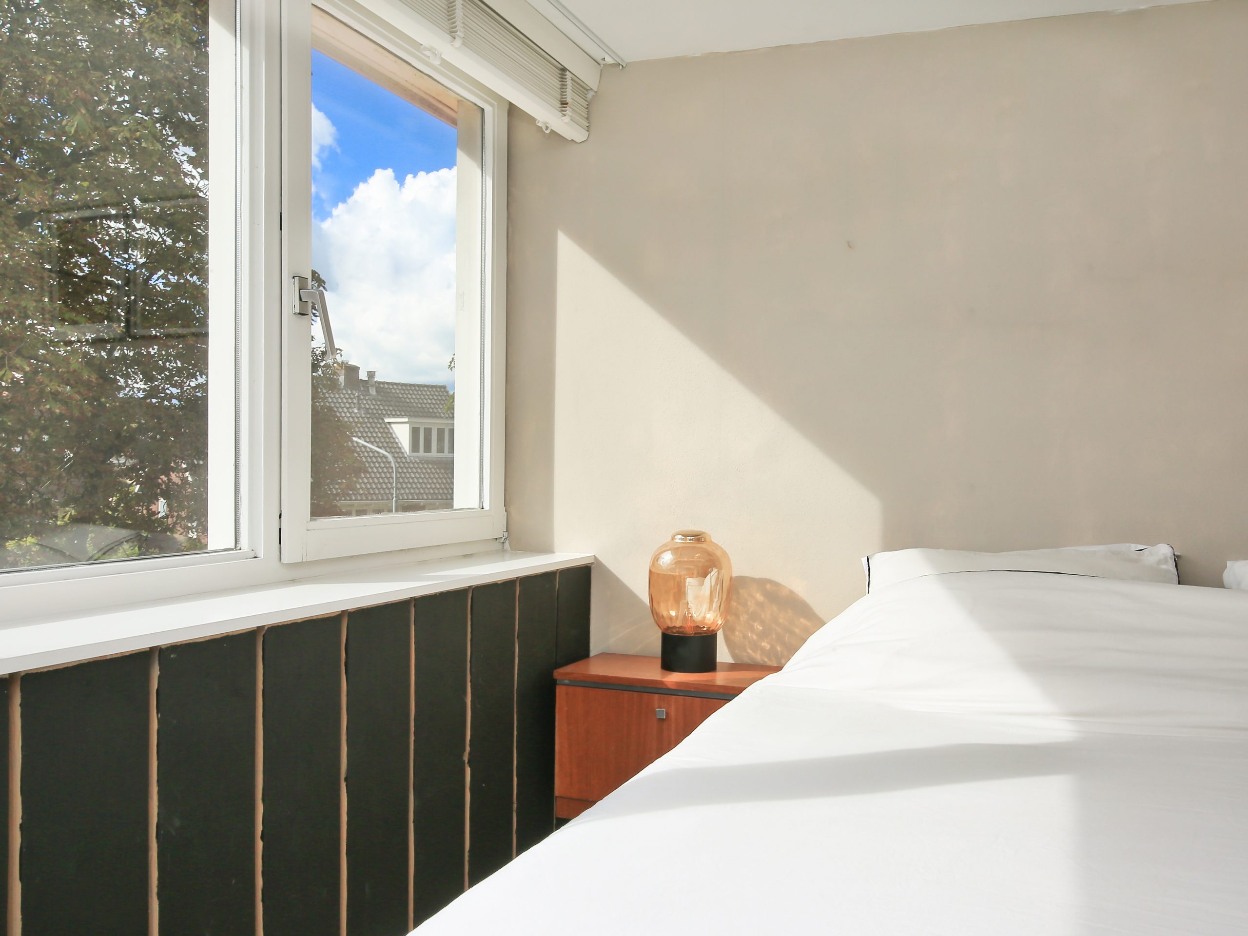 Op de verdieping zijn drie slaapkamers van 6, 12 en 13 m² en een uitgebouwde en stijlvolle badkamer en apart 2e toilet. De 2e etage van 24 m² met dakkapellen is nu ingedeeld als ouderslaapkamer met inloopkast, werkplek en heel veel bergruimte.