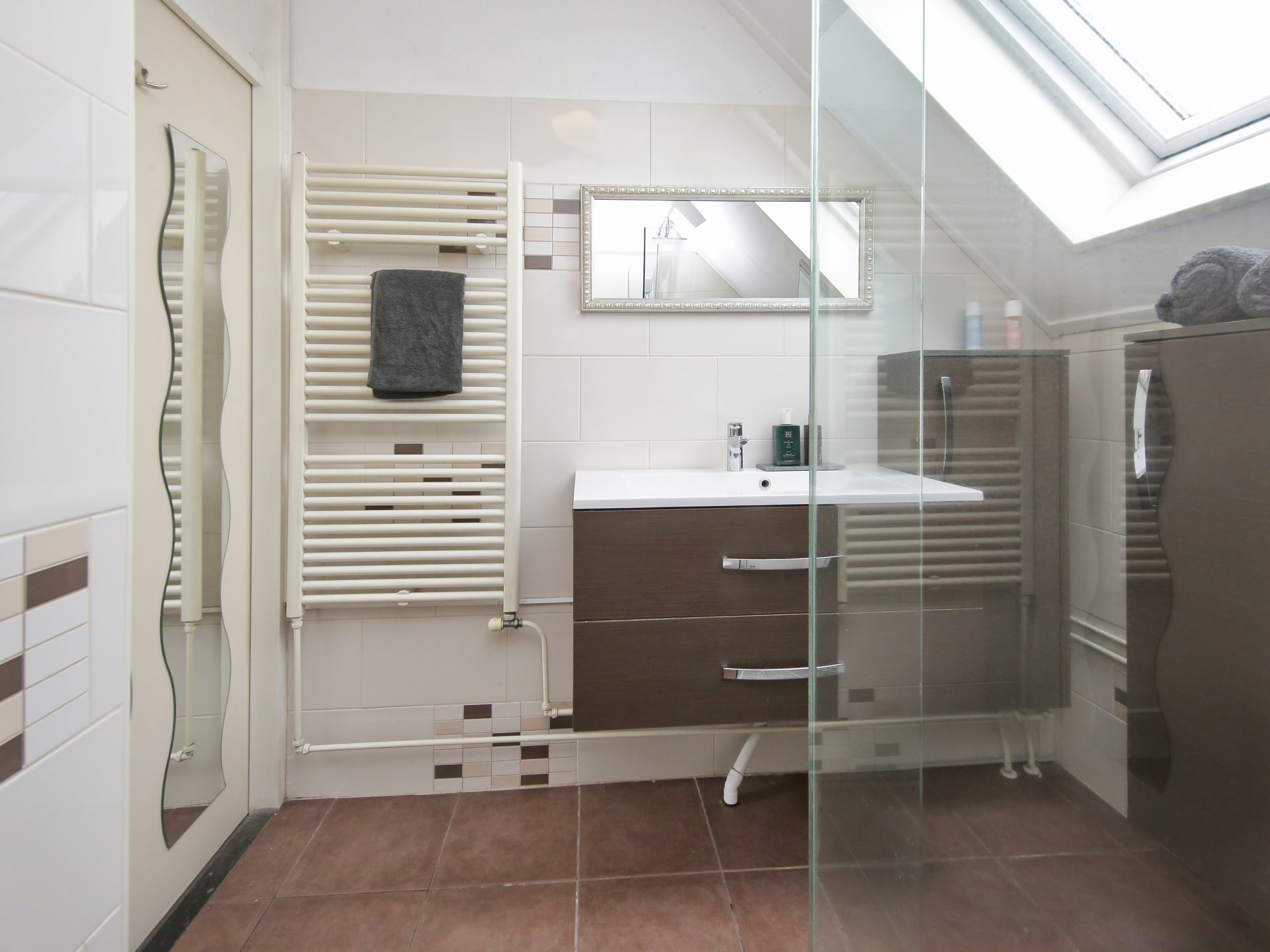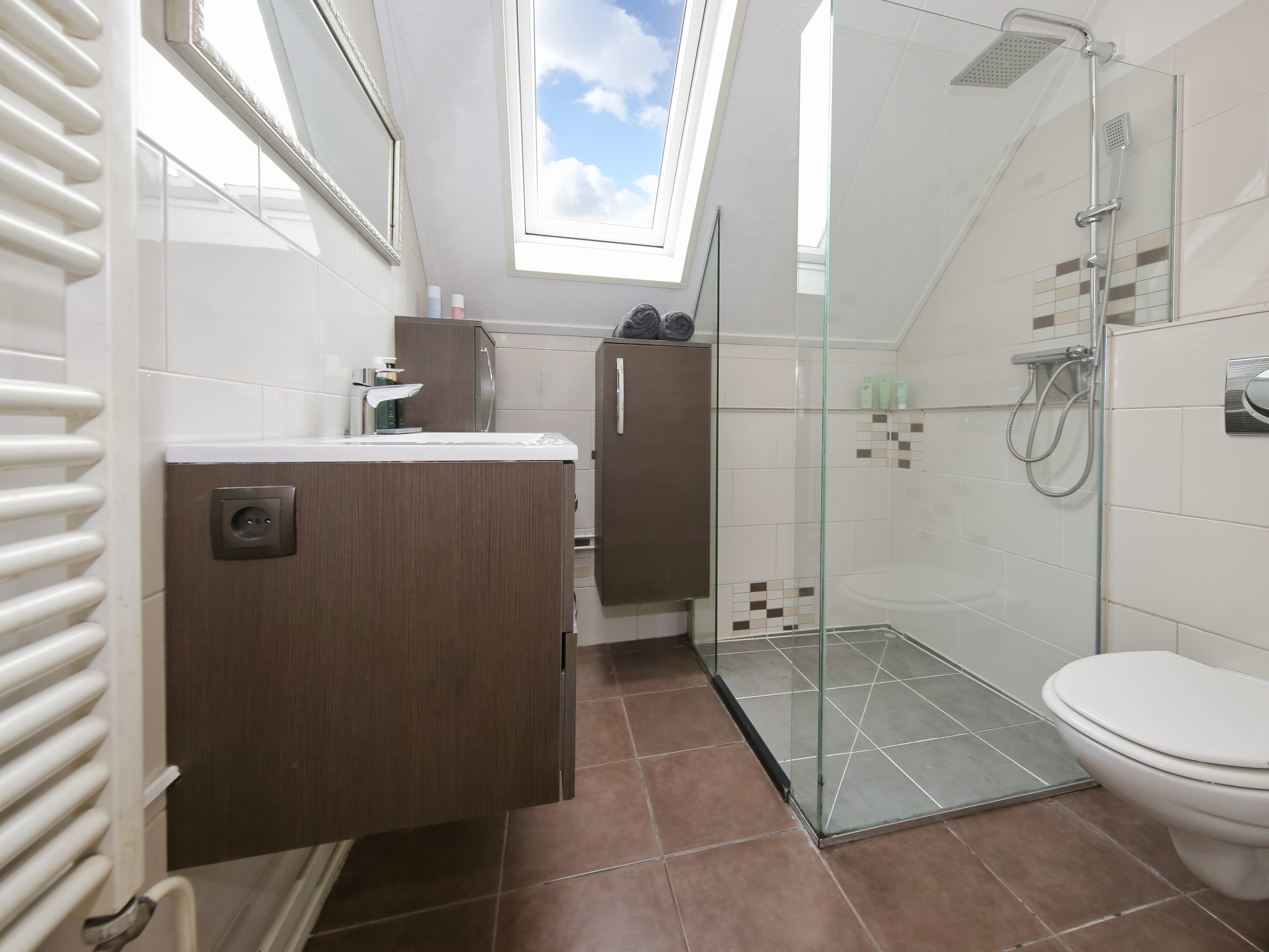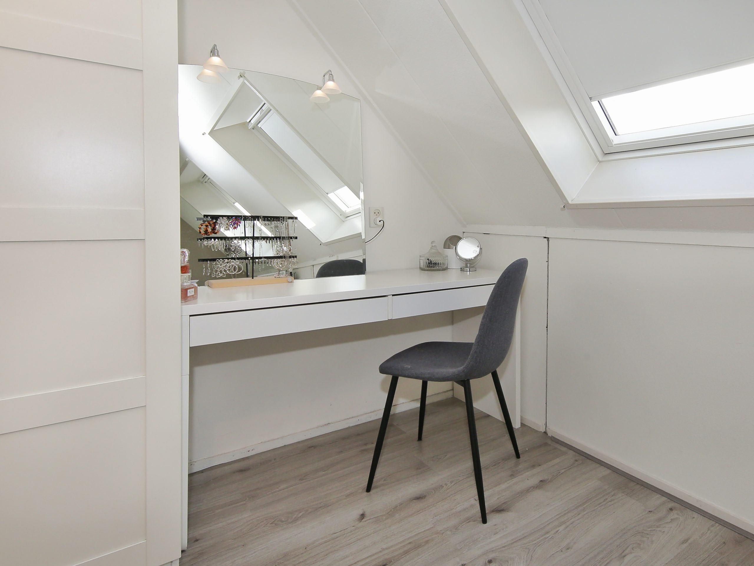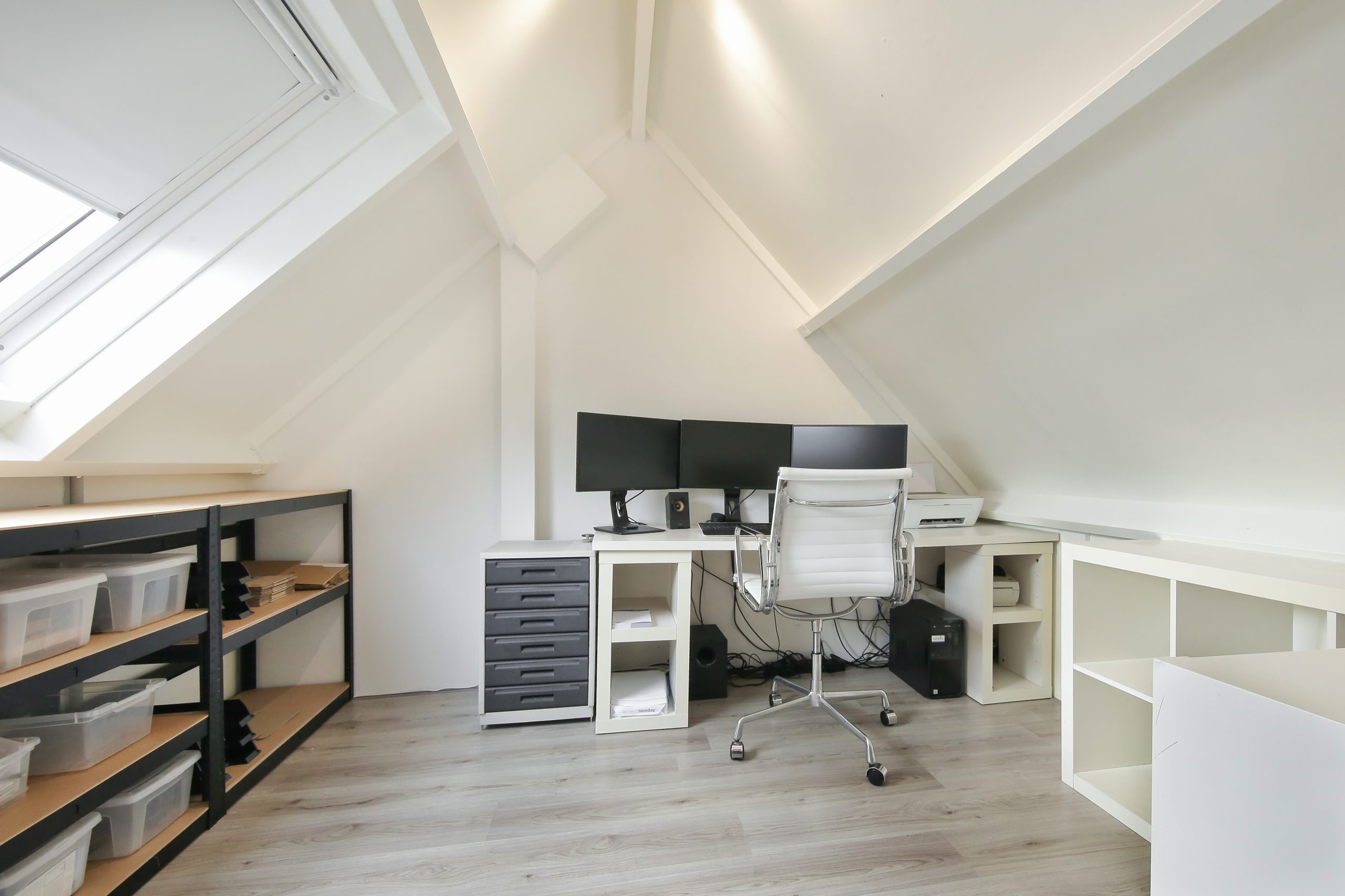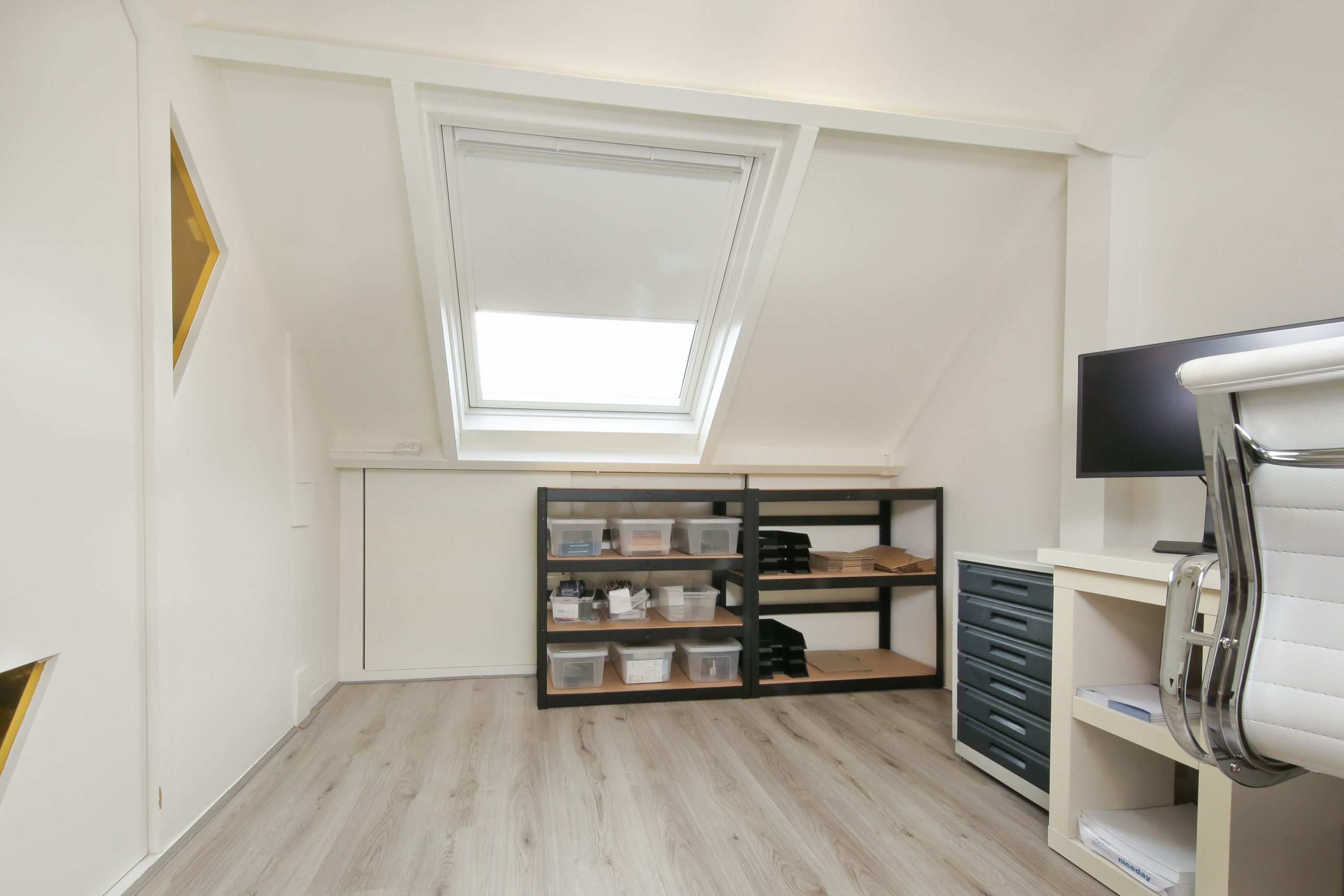 Overloop met deuren naar alle vertrekken. De ruime hoofdslaapkamer (circa 14 m²) ligt aan de achterzijde en heeft twee grote dakramen die veel licht binnenlaten. Daarnaast is er volop bergruimte achter de knieschotten. De tweede slaapkamer van bijna 12 m² is gelegen aan de voorzijde voorzien van een dakraam en inbouwkasten, de badkamer van 4 m² heeft een inloopdouche, wastafelmeubel en zwevend toilet.