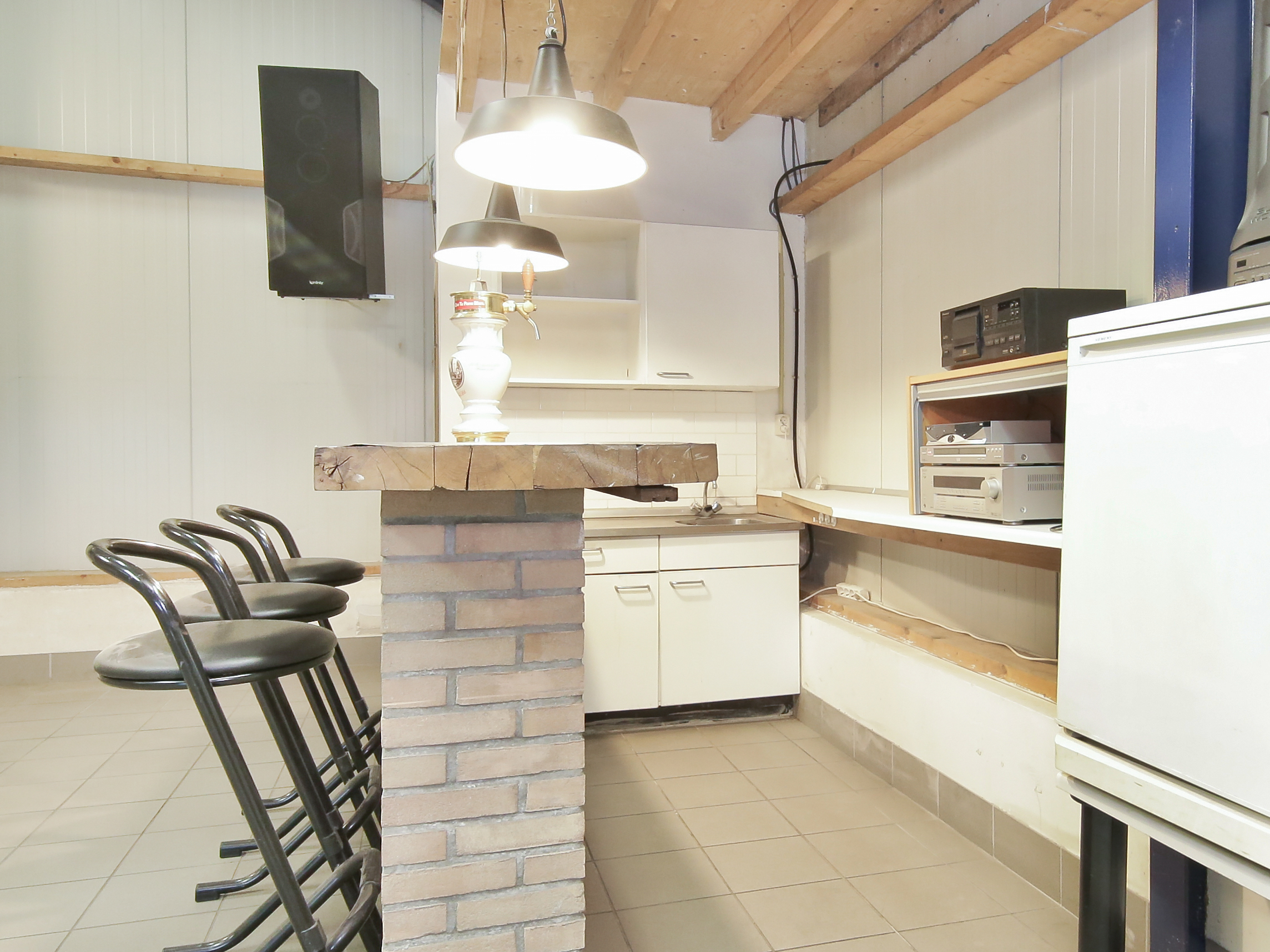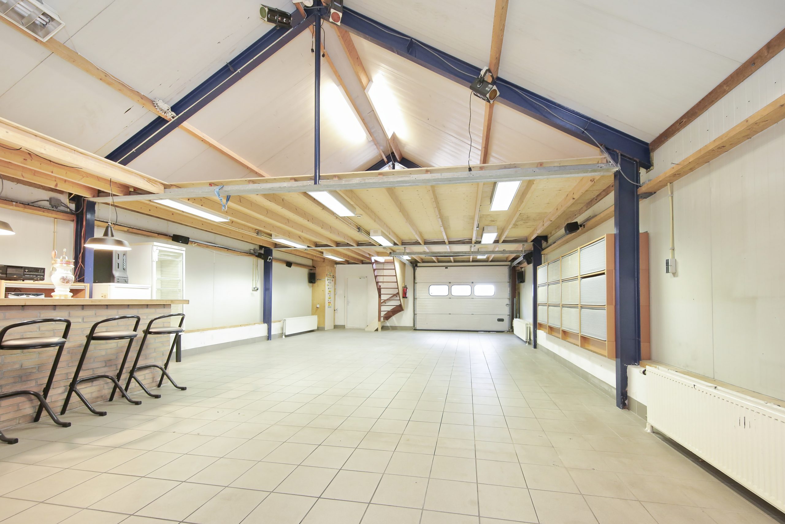 - De loods wordt verwarmd via een Intergas Kombi Kompakt 24/18A HRE Cv-ketel