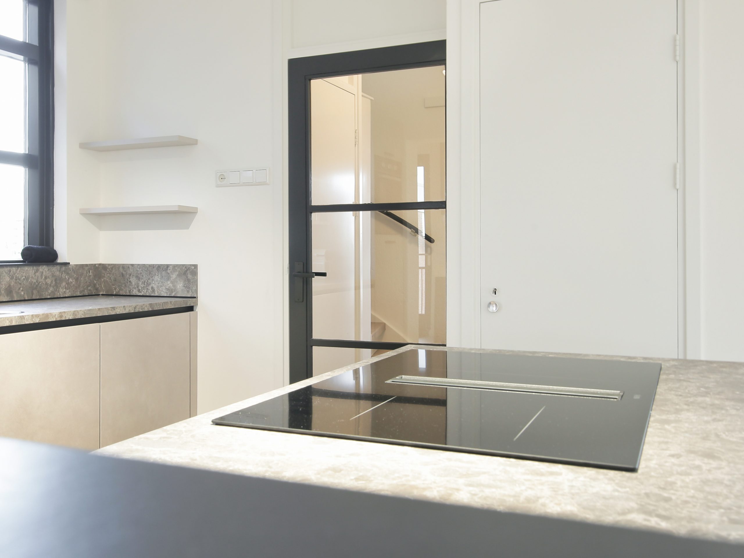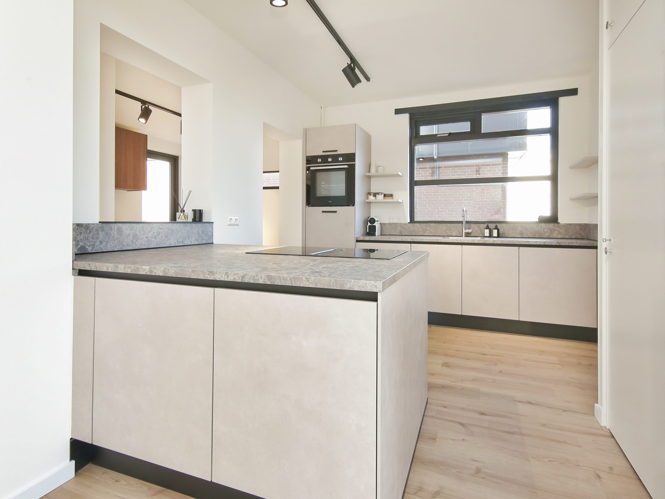 Via de keuken is er toegang tot de woonkamer en de bijkeuken. De keuken van ruim 9 m² is voorzien van een schiereiland met inductieplaat met geïntegreerde afzuiging en een keukenblok met spoelgelegenheid, close-in boiler en diverse inbouwapparatuur.