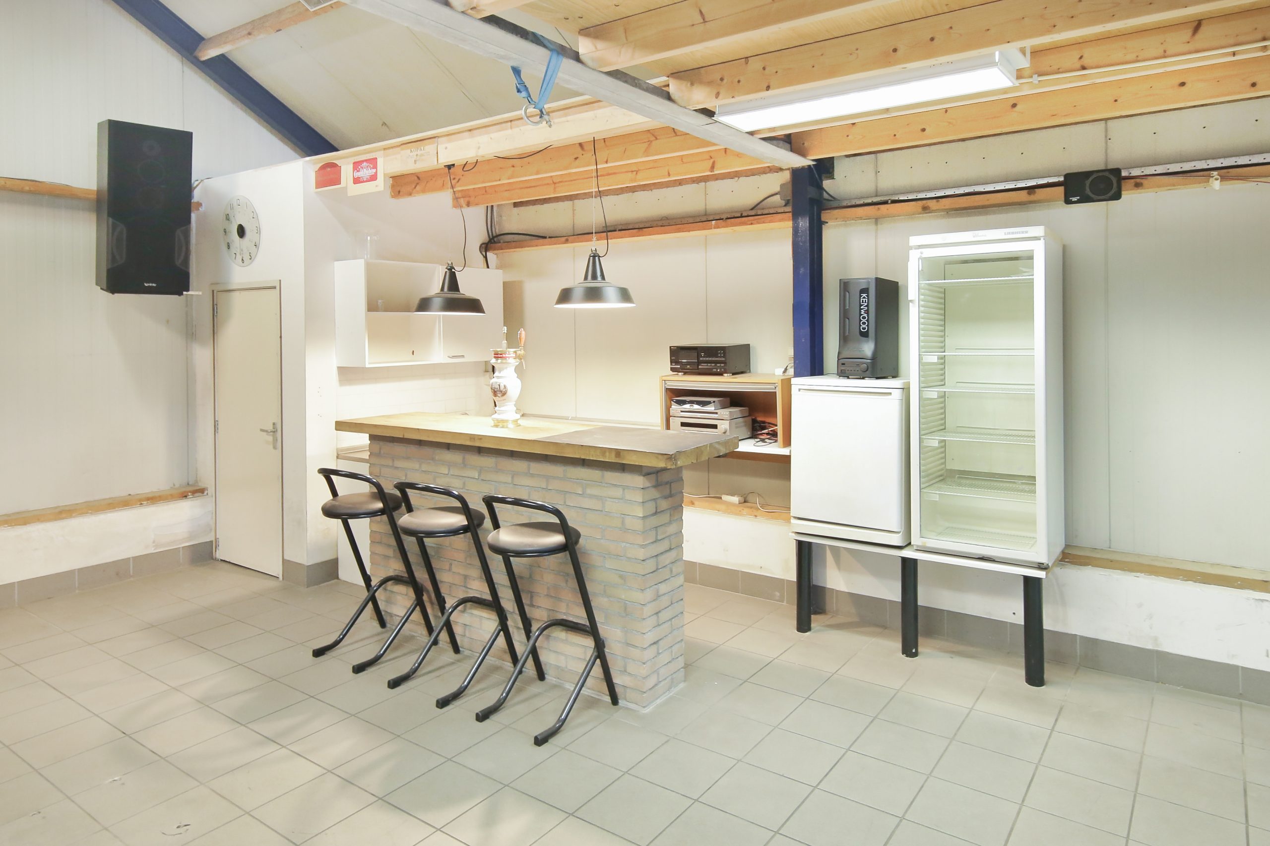 - Het warme water van deze loods komt via deze combiketel en een ITHO Daalderop elektrische close-in boiler